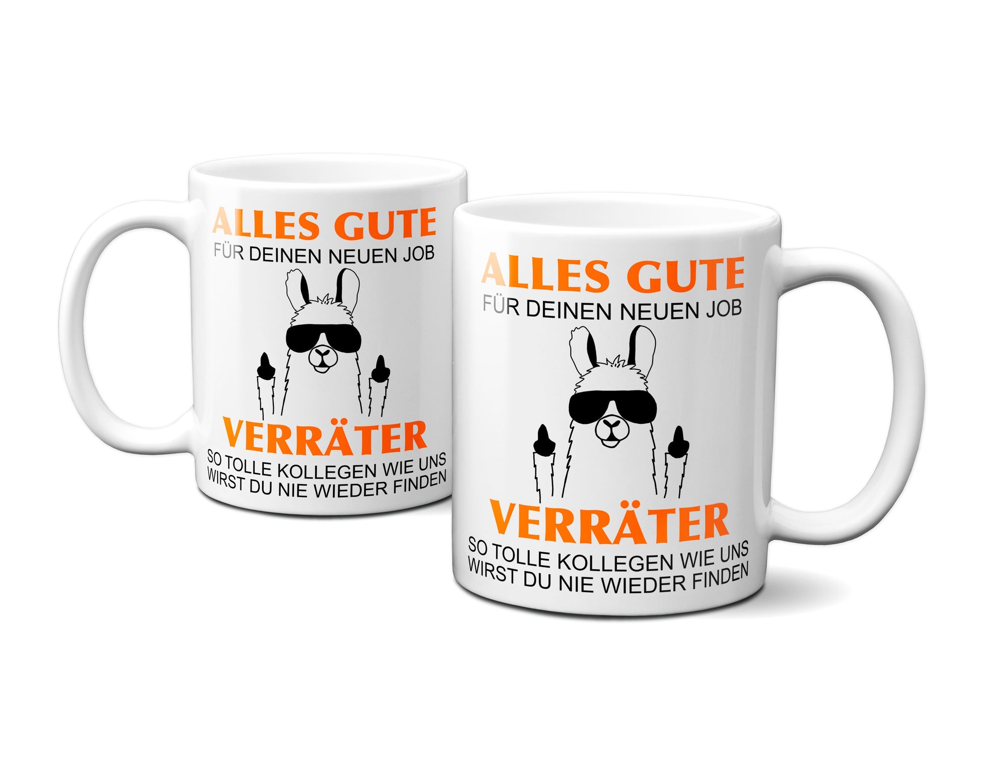 Tauche ein in eine Welt voller sarkastischer Wünsche und einzigartigem Design mit unserer Kaffeetasse "Alles Gute für Deinen neuen Job. Du Verräter!" Diese Tasse ist nicht nur ein Behälter für Deinen morgendlichen Koffeinkick, sondern auch eine subtile, aber dennoch humorvolle Art, einem Freund oder Kollegen alles Gute für ihren neuen beruflichen Weg zu wünschen.