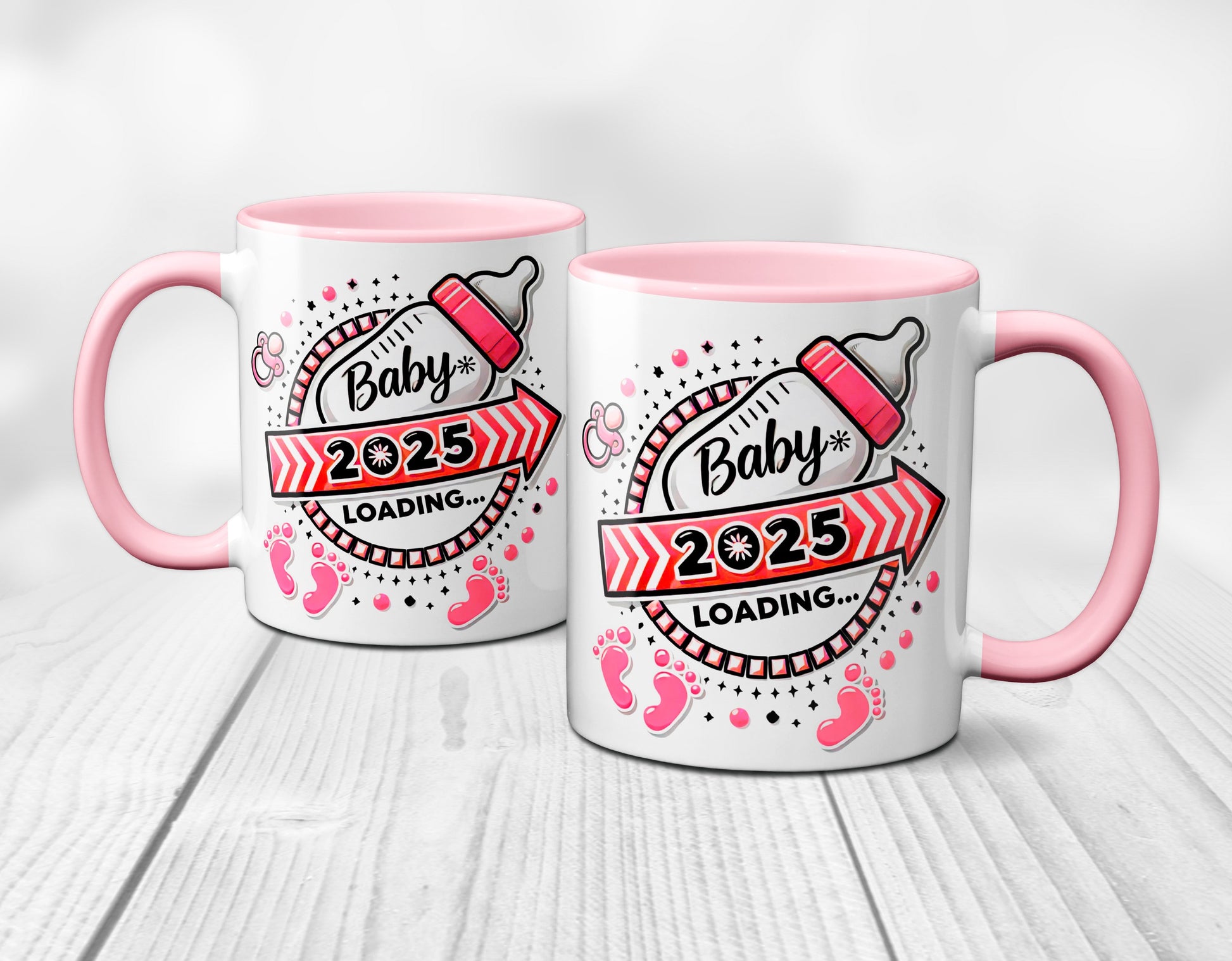 Baby Loading 2025 - Motiv rot - rosa Tasse (Girl, Mädchen)