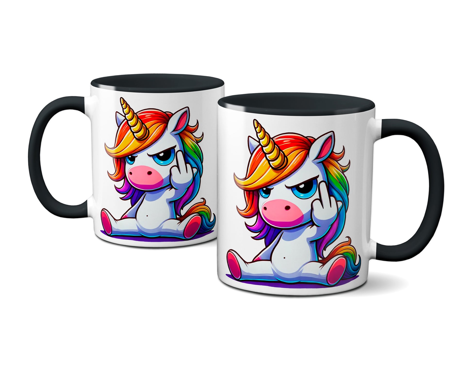 Einhorn mit Mittelfinger - Tasse - Kaffeebecher (Schwarz)