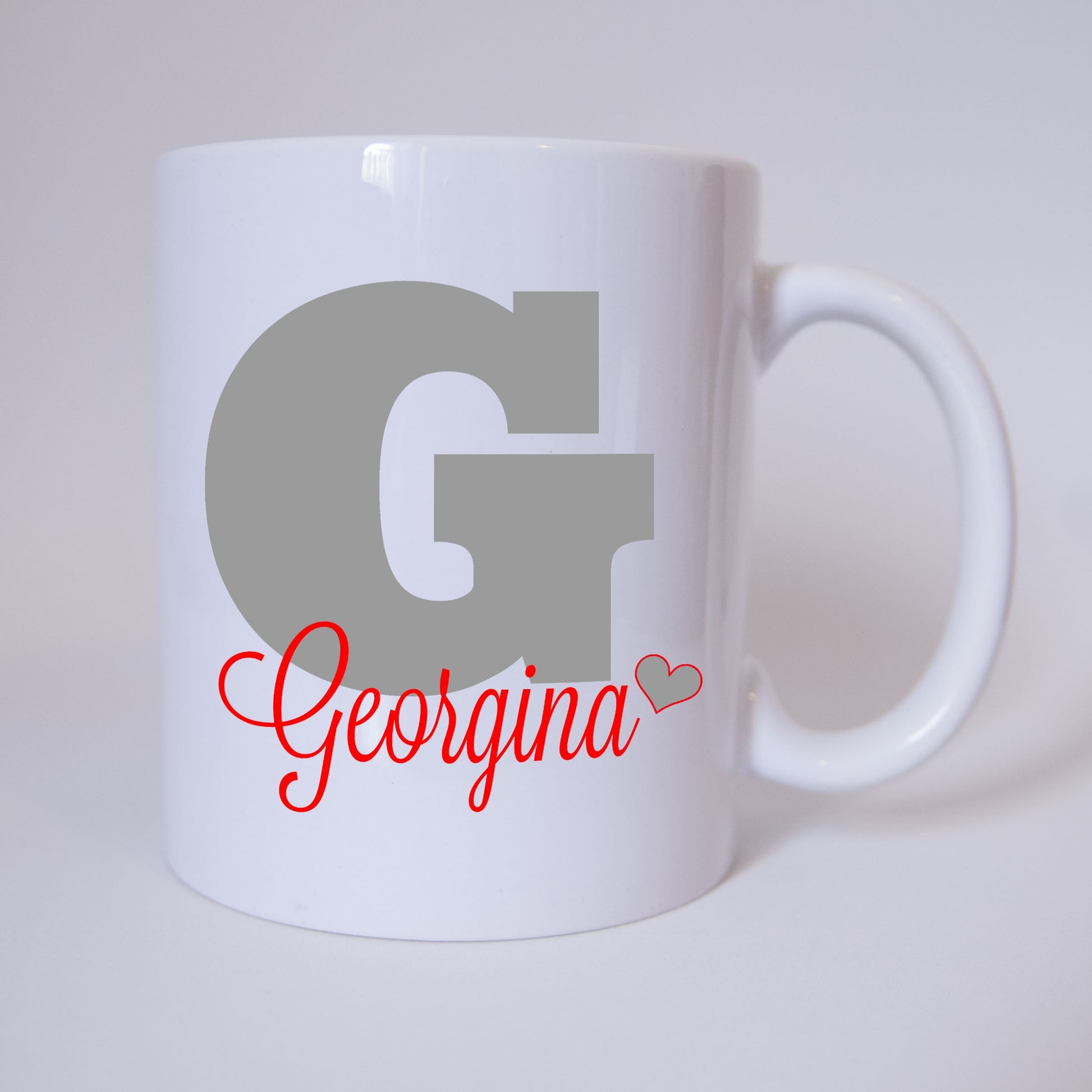Individuelle Namenstasse Buchstabe G (Grau/Rot)