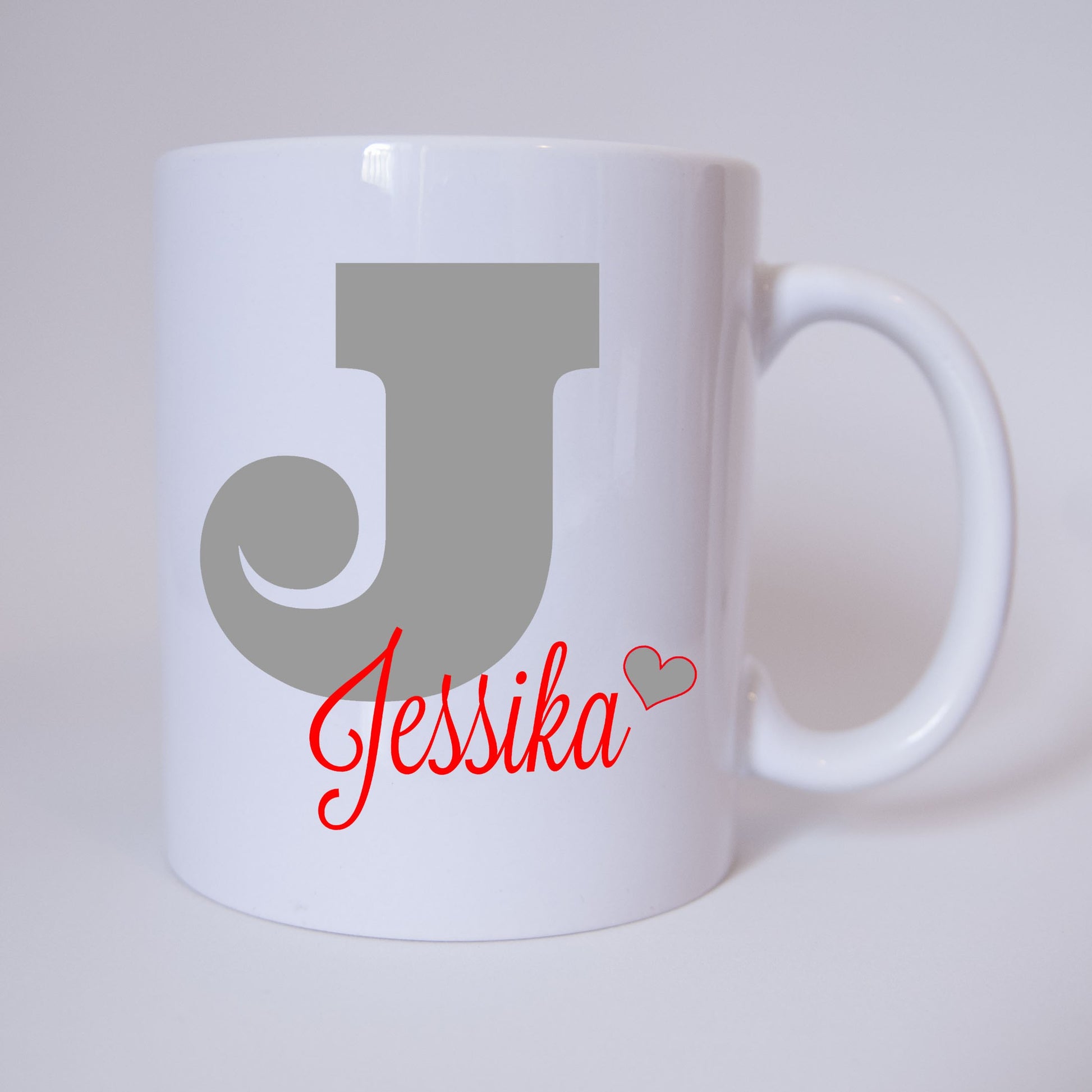 Individuelle Namenstasse Buchstabe J (Grau/Rot)