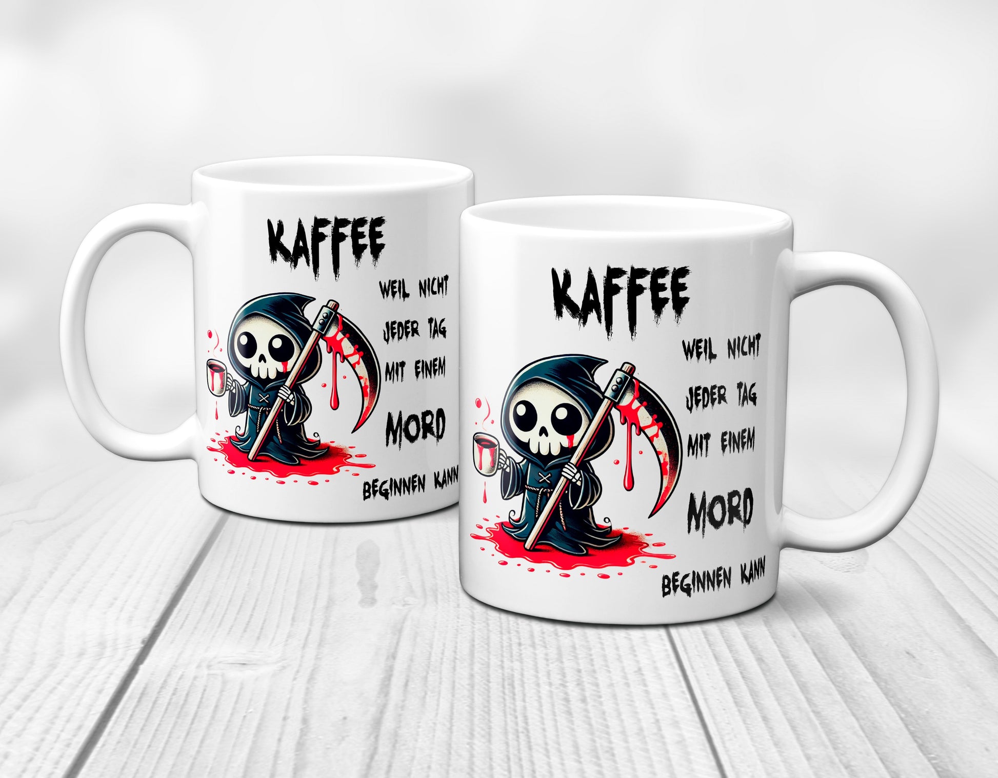 Du suchst nach einem Geschenk, das garantiert für Lacher sorgt? Die Kaffeetasse von TassenKing mit dem frechen Sensenmann-Design ist das perfekte Accessoire für alle, die Humor lieben. Der süße, aber rebellische Sendenmann zeigt selbstbewusst anderen wo es lang geht – egal ob im Büro, zu Hause oder bei Freunden.Kaffee, weil man nicht jeden Morgen mit einem Mord beginnen kann.
