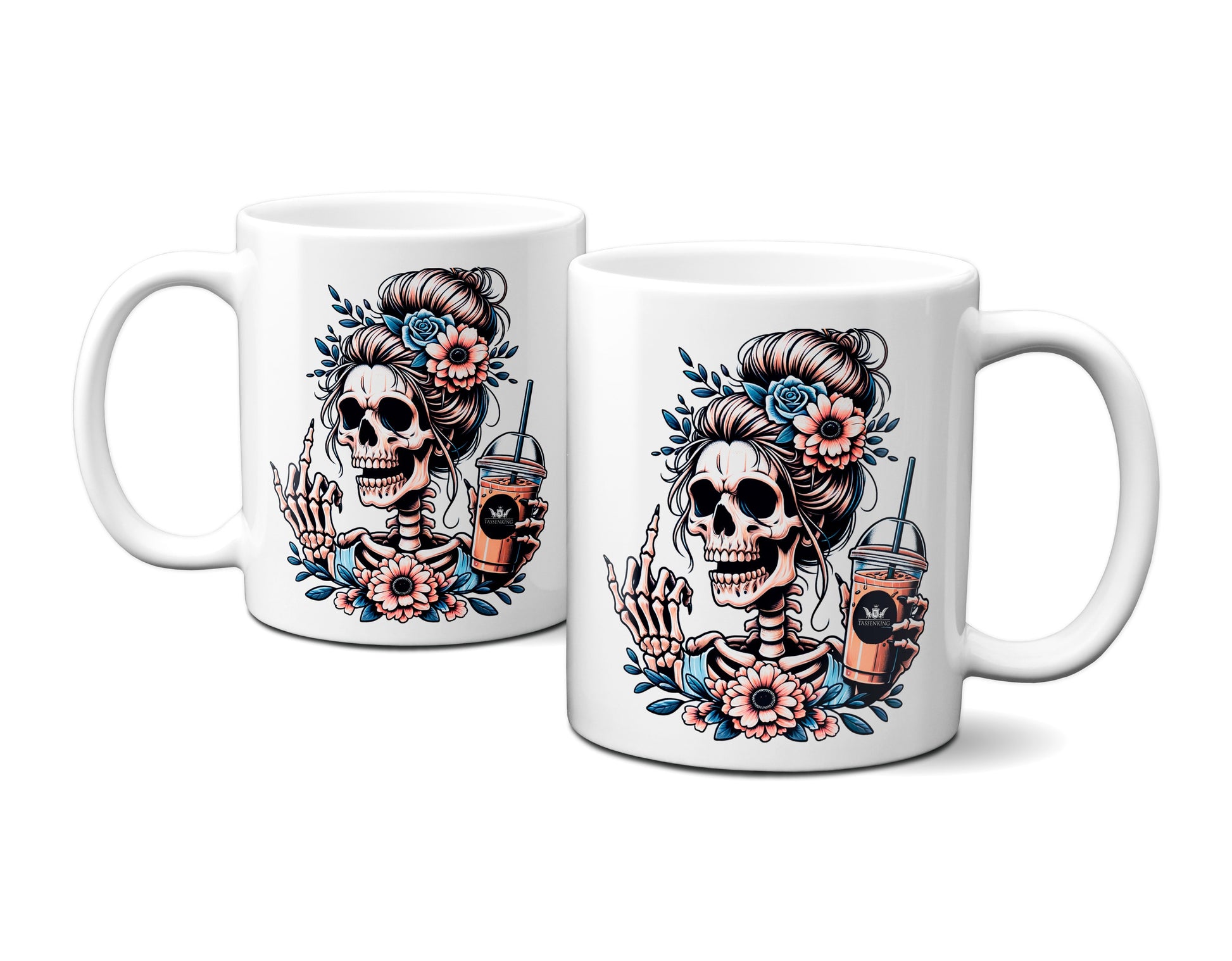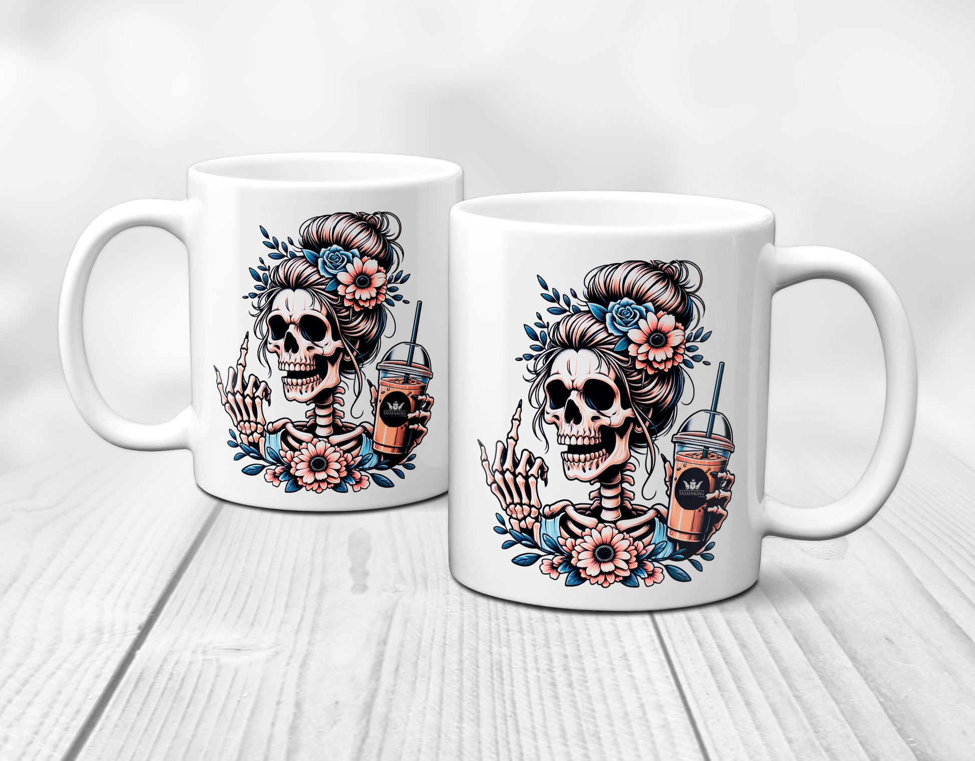 - Auffälliges Design: Die Skull Frau mit Mittelfinger und Kaffee sorgt für Aufsehen und bringt dich zum Schmunzeln – egal ob im Büro oder zu Hause.