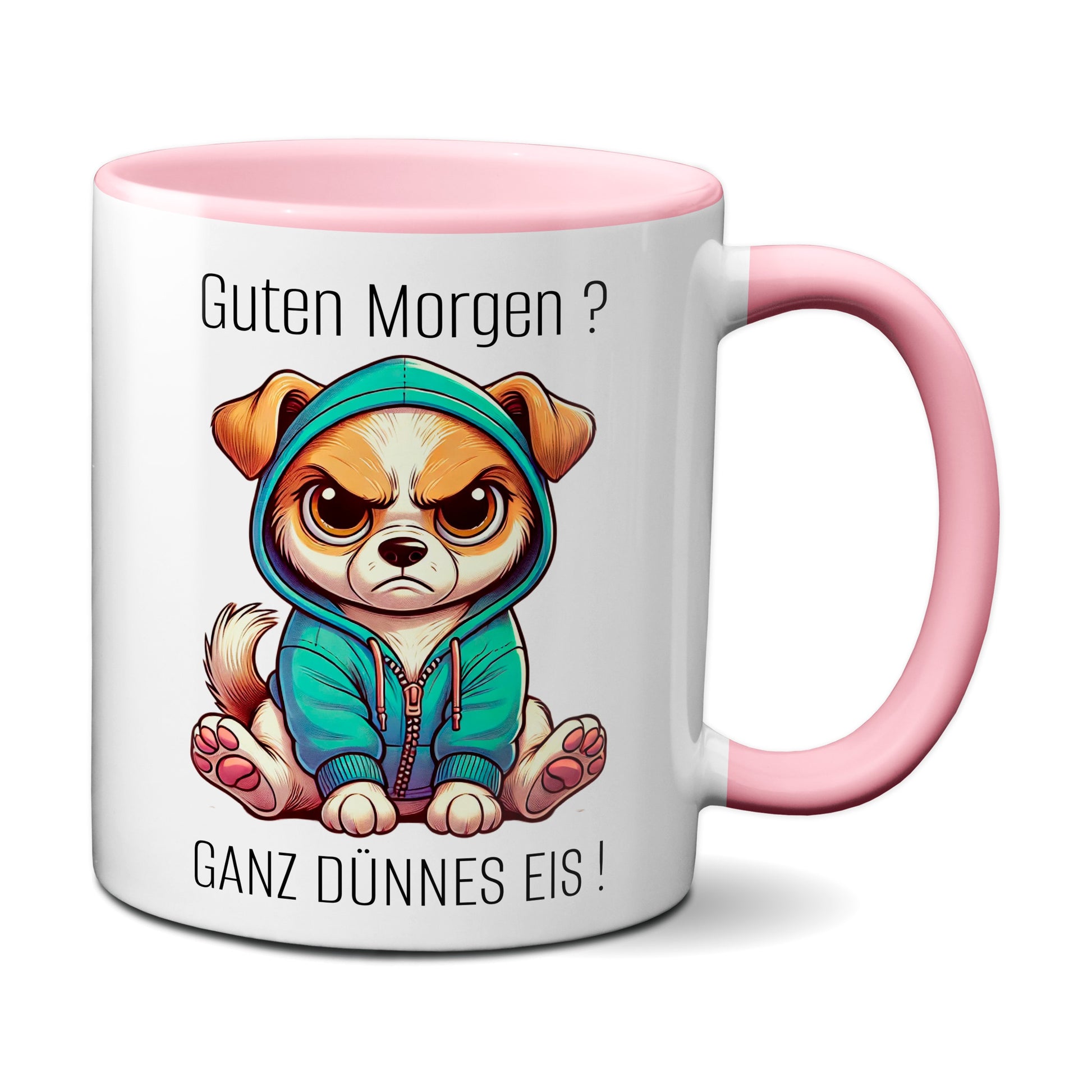 Süßer Hund mit Spruch - Guten Morgen? Ganz dünnes Eis! (rosa)