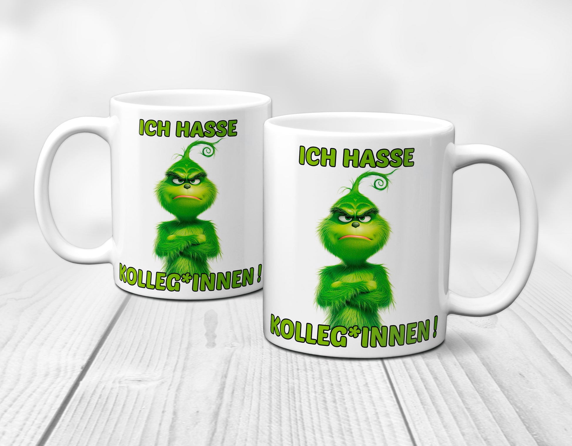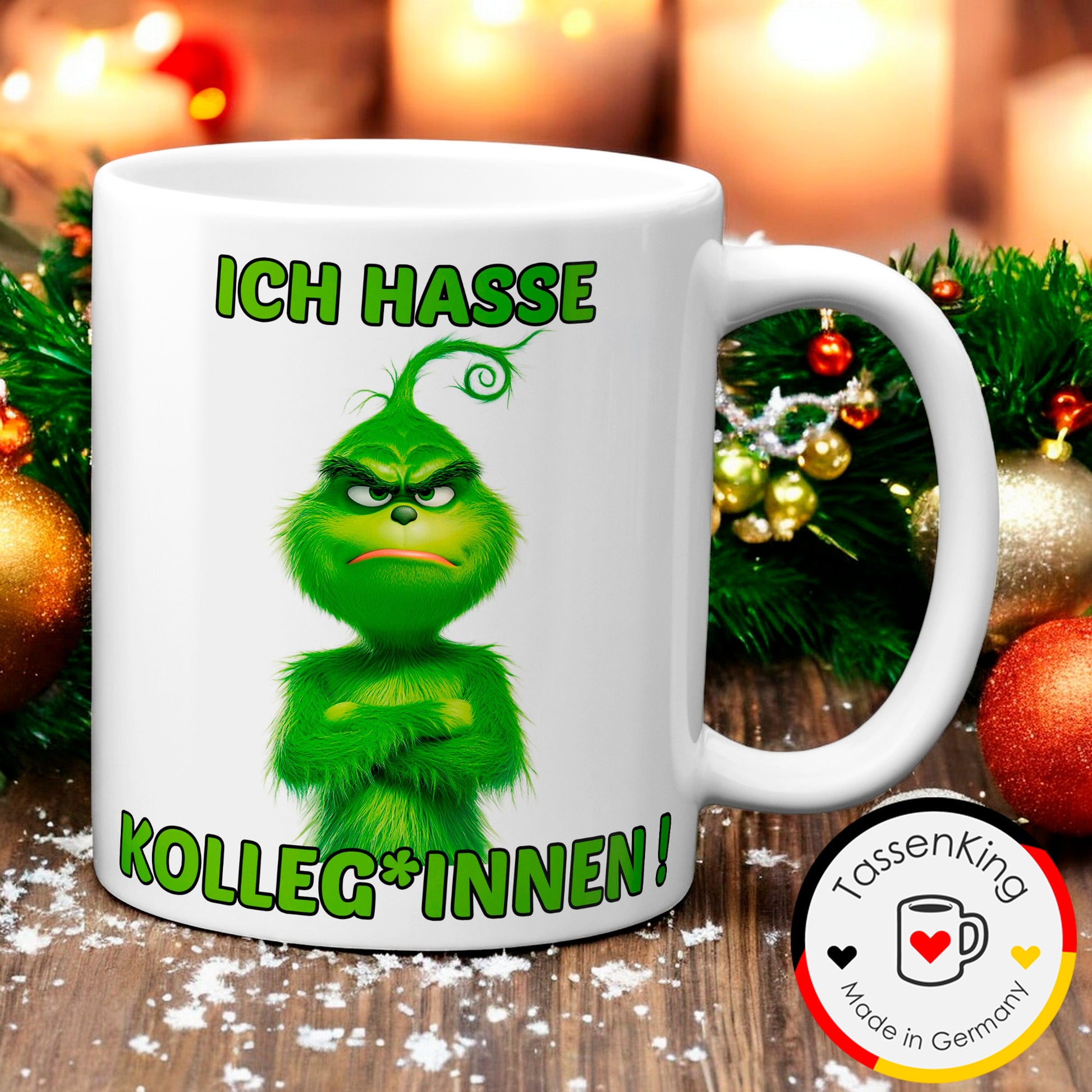 Grinch-Tasse - "Ich hasse Kolleg*innen" - Weihnachtstasse mit Humor